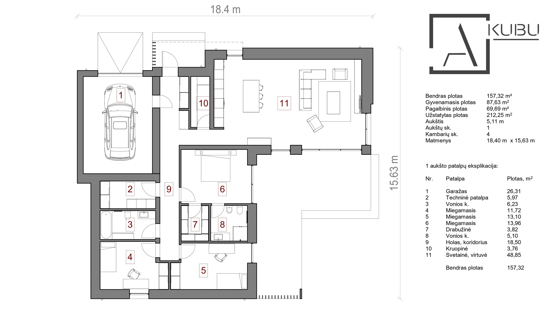 1.14, Vieno aukšto su sutapdintu (plokščiu) stogu, 157 kv. m.